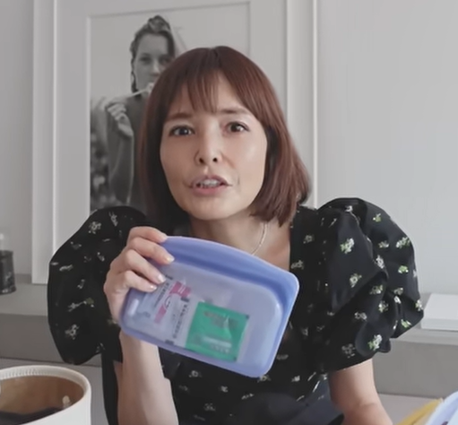 スタッシャーの密閉シリコンケース。アメリカ カリフォルニア発のプラスチックフリーの食品用保存ケースです。梨花さんは小分けにして小物を整理されているようでしたね。3000回以上繰り返し使えるという、サステナブルなところも人気のポイント。
